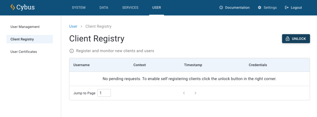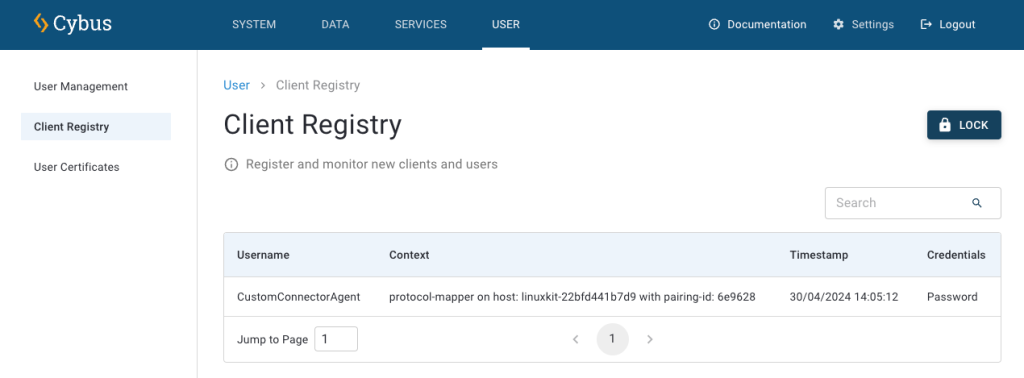3. To register the custom connector as an agent in Connectware, log into Connectware and select **User** > **Client Registry**.