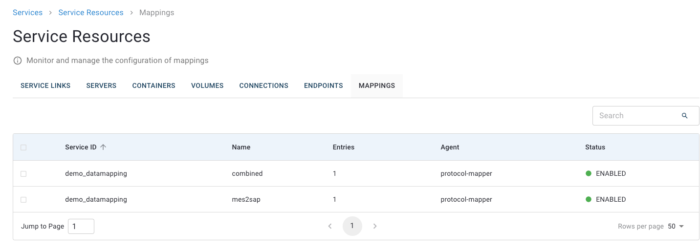 In the list, all mappings are displayed with the following information: