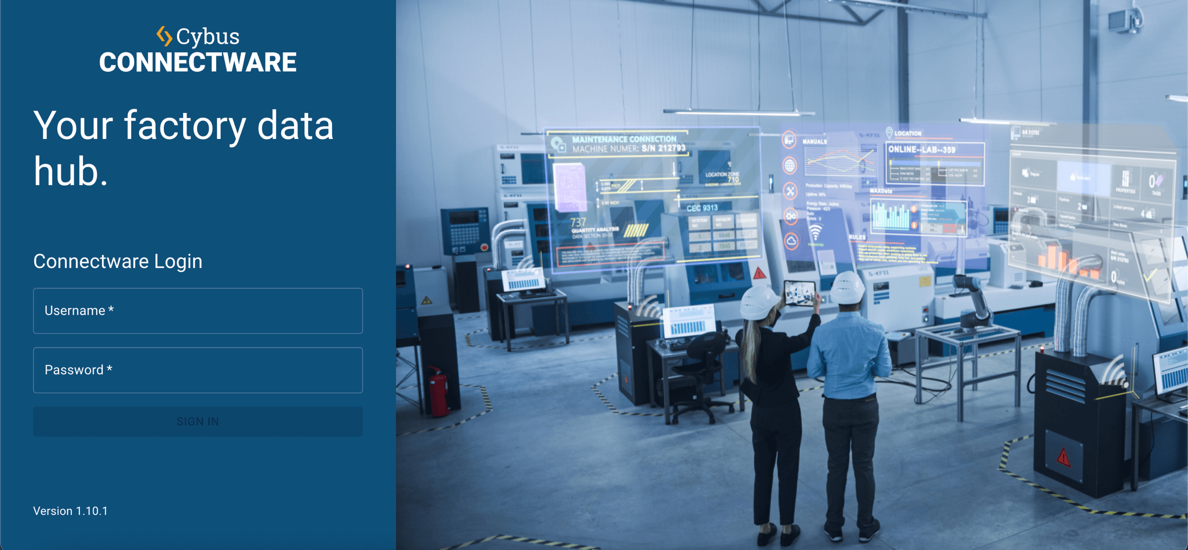 2. Enter your **Username** and **Password**. When setting up Connectware initially, you can use the [default admin user](https://docs.cybus.io/1-11-0/documentation/user-management/users/default-admin-user) to log in.