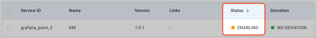 The service shows **Enabling** at the status while creating all resources specified in the service commissioning file. Once complete, the status changes to **Enabled**.