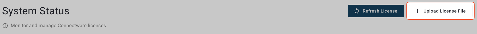 You can manually [refresh your license](#manually-refreshing-licenses-in-connectware) via the **Refresh License** button. You can [upload a new license file](#uploading-license-files-to-connectware) via the **Upload License File** button.