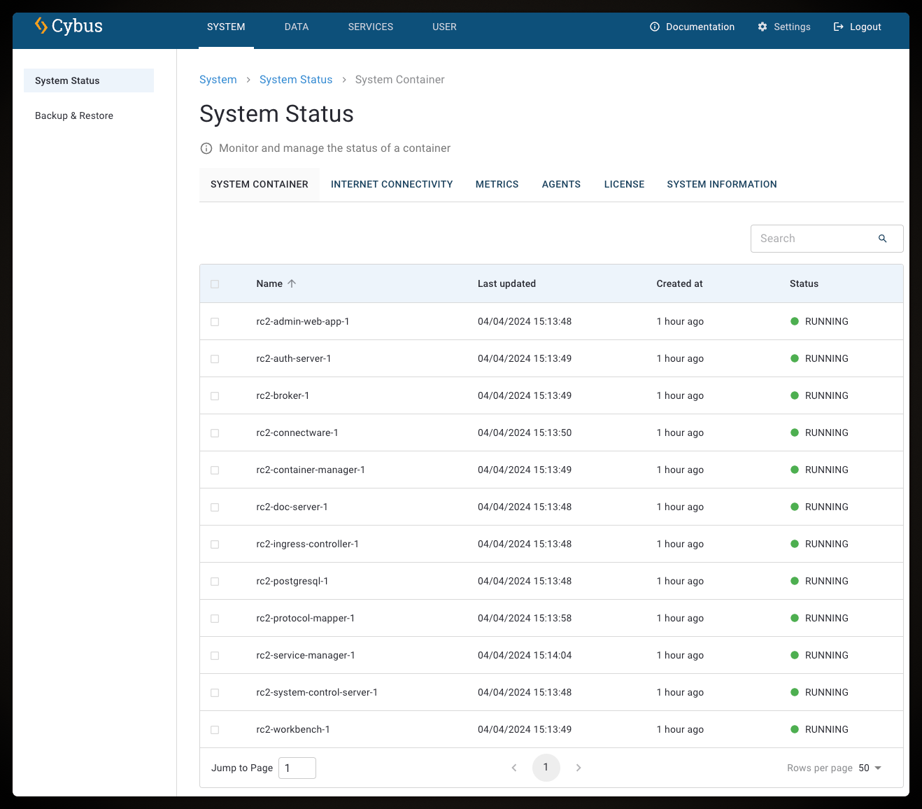 The system status API allows you to retrieve status information about your system container. For more information, see [System Status API](https://docs.cybus.io/2-0-6/reference/api-reference/api-definition-3).