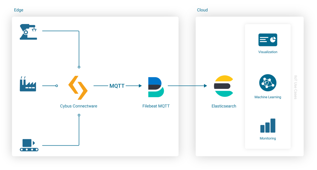 The simplest and most reliable way of communication when integrating Connectware with Elasticsearch is the MQTT Input for a Filebeat instance. An additional advantage of the Connectware MQTT connector is built-in data buffering, which means that data is stored locally when there is a temporary connection failure between Filebeat and the Elasticsearch cluster: