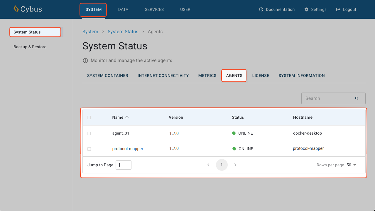 * To open the **Agents View**, click **System** > **System Status** and click the **Agents** tab.