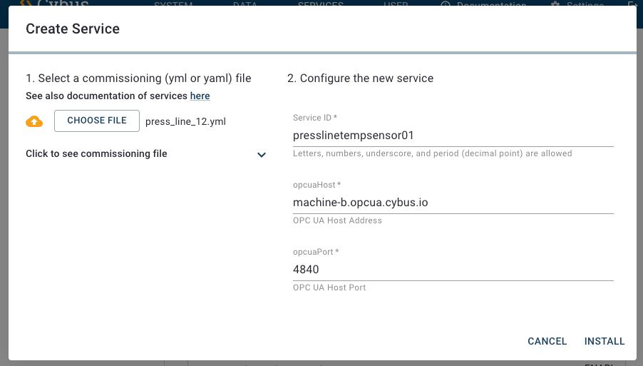 <figure><img src="https://2355450750-files.gitbook.io/~/files/v0/b/gitbook-x-prod.appspot.com/o/spaces%2FGzXPesVecsUM1eHBfwea%2Fuploads%2Fgit-blob-18f5afc002b1cd229a2f76d130b3d2739a6afaea%2Fservice_id.png?alt=media" alt=""><figcaption><p>Example of the resulting service ID presslinetempsensor01 displayed during upload to Connectware in the Create Service dialog.</p></figcaption></figure>